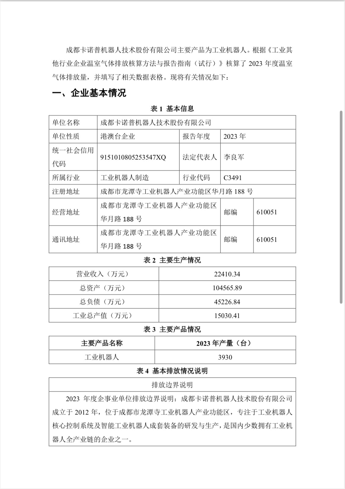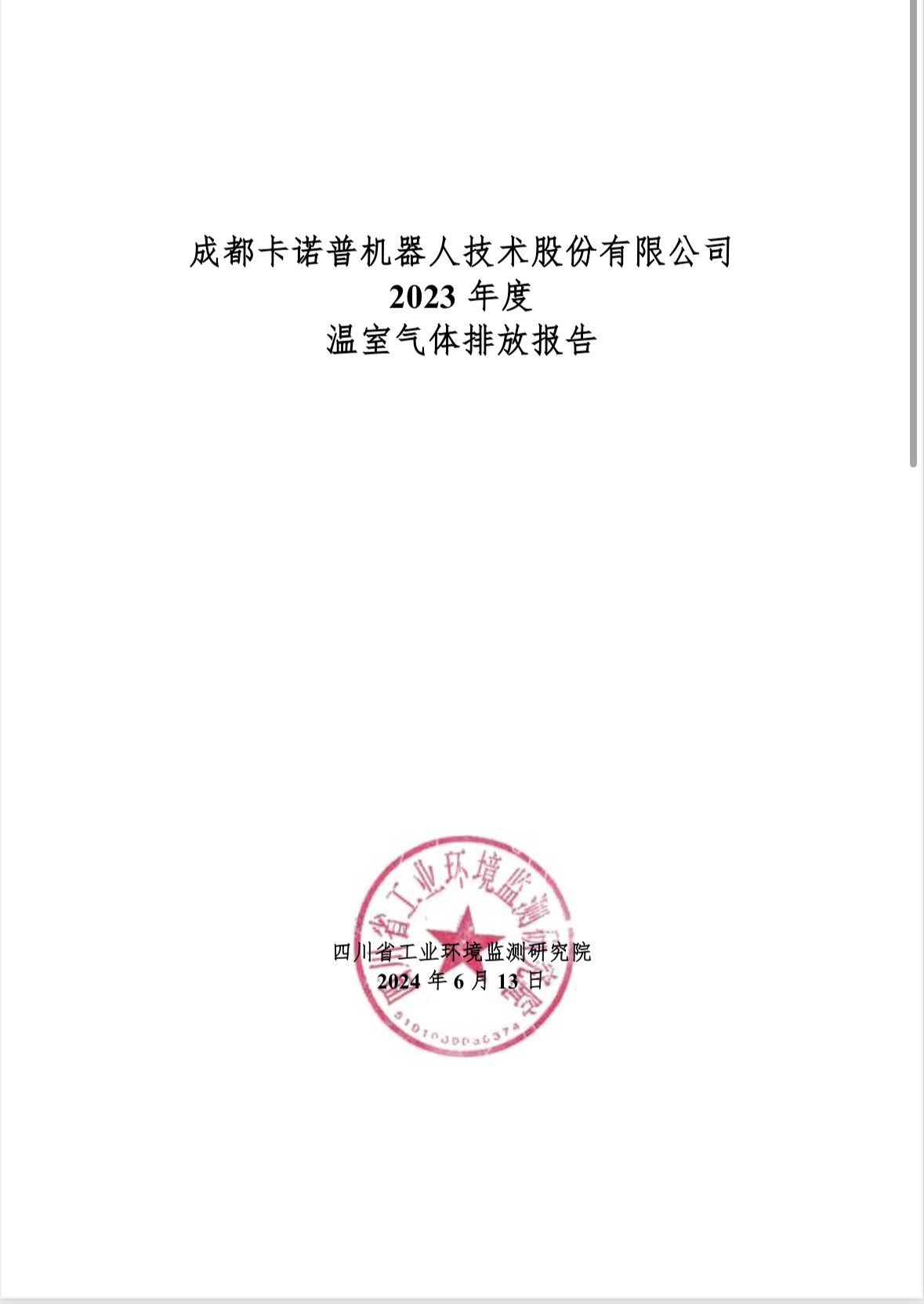 成都星空電競機(jī)器人技術(shù)股份有限公司 2023 年度 溫室氣體排放報告